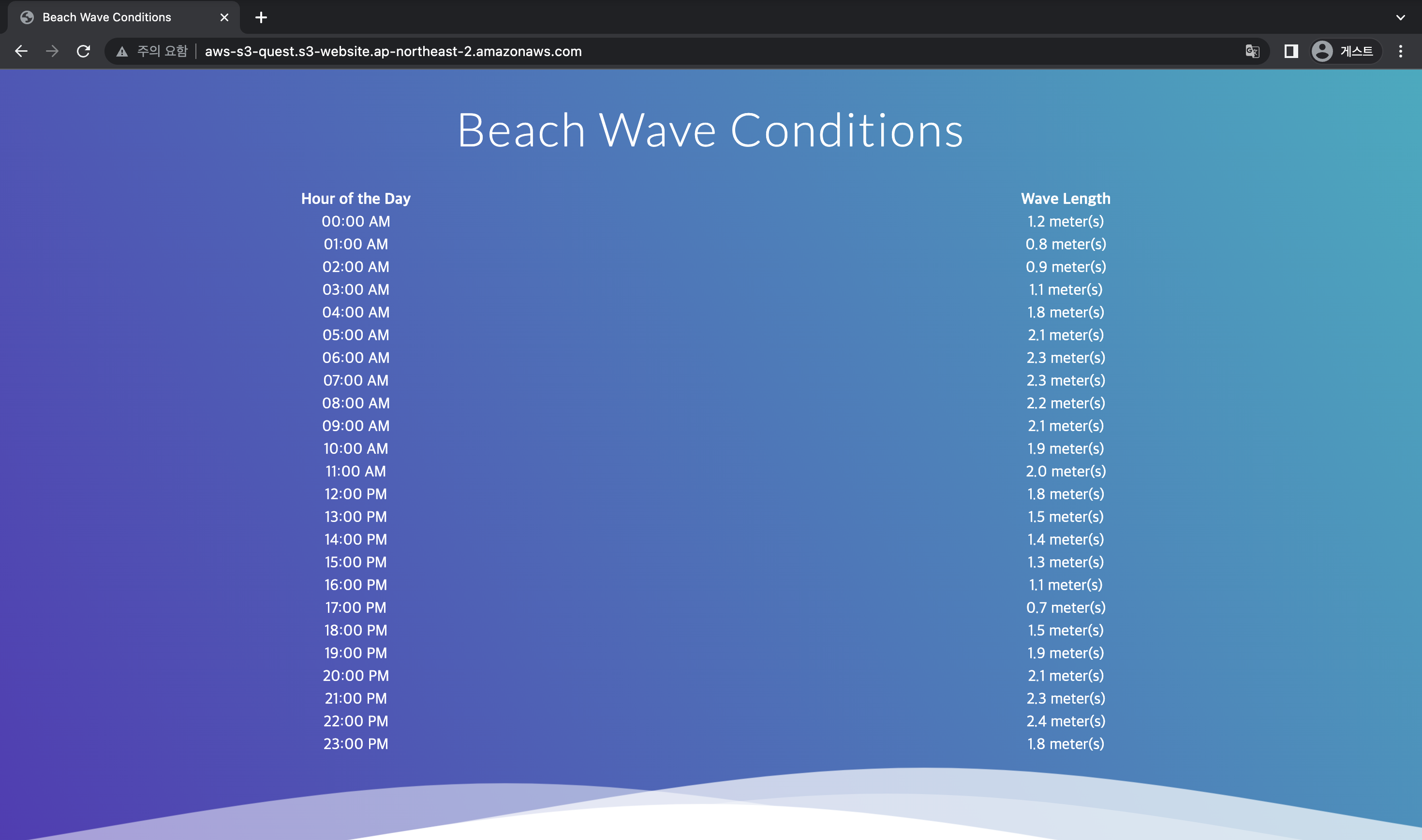 퀘스트 제목 Cloud Computing Essentials 퀘스트 내용 도시의 웹 포털은 신뢰성을 높이기 위해, 해변의 파도 크기를 예측하는 페이지를 AWS로 이전해야 합니다. 이는 기존에 다른 환경에서 호스팅되던 페